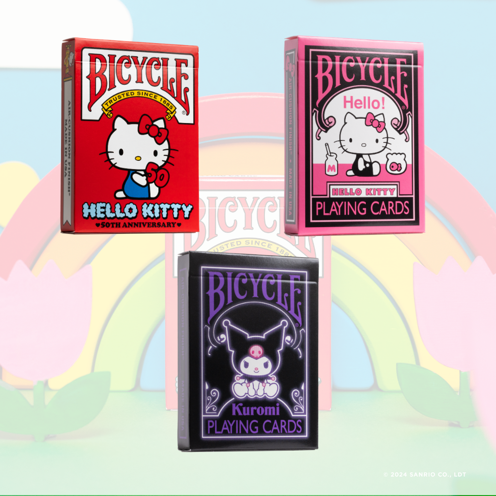 Ontdek drie unieke speelkaarten in één betoverende bundel met de Sanrio Collectie van Bicycle. Deze set brengt de speelse energie van Kuromi en de tijdloze charme van Hello Kitty samen in een collectie die zowel verzamelaars als kaartspelers zal aanspreken.